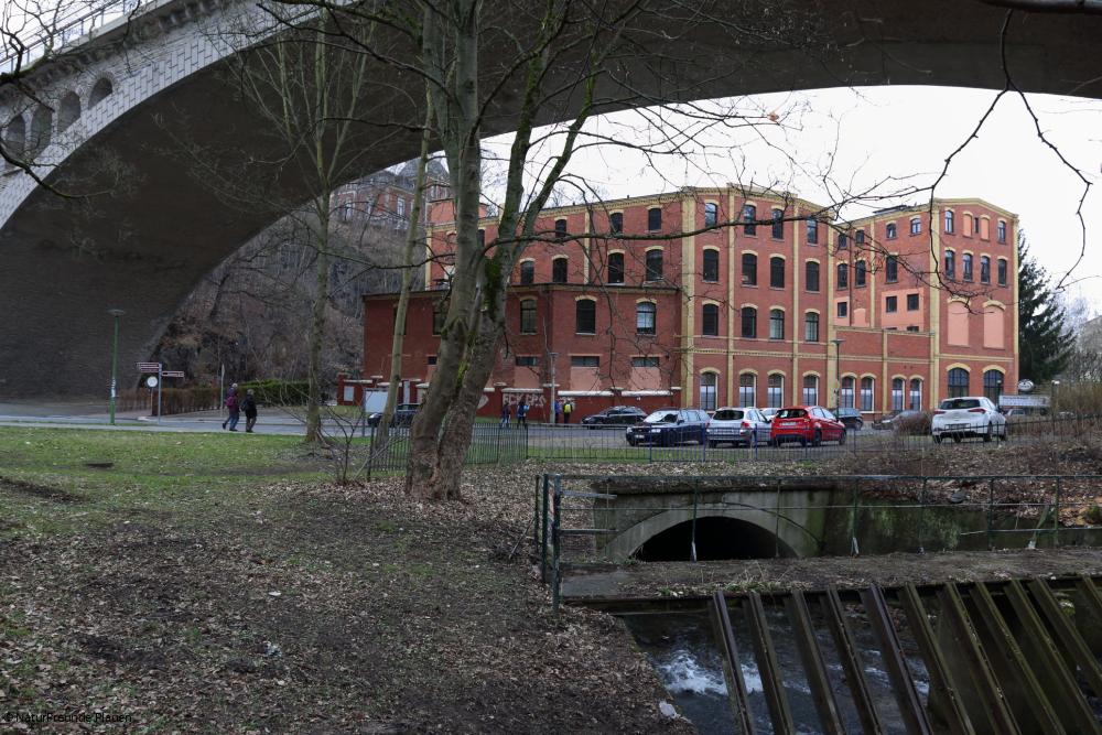 Wieder unterwegs näherten wir uns schließlich dem Plauener Stadtzentrum und unterquerten die „Friedensbrücke“: eine der größten Bruchsteinbogenbrücken der Welt. Sie überspannt das Tal des Syrabaches mit einer lichten Weite von 90 Metern.