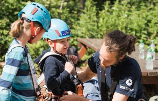 Mit etwas Glück können die Kinder sogar einen der frei lebenden Pfaue entdecken. Teamprojekte mit einem Erlebnispädagogen, wie Bogenschießen oder Kletteraktionen, fördern Kreativität und Sozialkompetenzen.