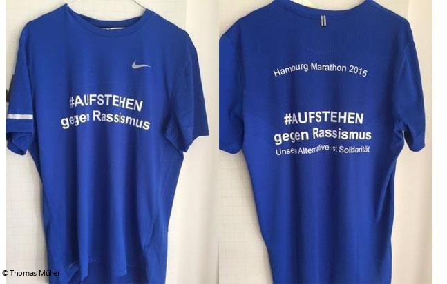 Ihren gemeinsamen Marathonlauf in Hamburg am 17. April 2016 wollen der Bremer NaturFreund Dr. Michael Heiß und sein Freund Thomas Müller der Initiative „Aufstehen gegen Rassismus“ widmen und Spenden für die Initiative erlaufen.