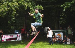 Wir vom Landesverband der Naturfreundejugend Nordrhein-Westfalen haben im Juni dieses Jahres schon zum dritten Mal das „Slacklinefestival NRW” veranstaltet. An zwei Tagen haben wir auf der Wiese und im Wald um das Naturfreundehaus Ebberg unterschiedliche Workshops rund um das Thema Slackline angeboten: Slacklinen zum Kennenlernen, High-Lining (also sehr hohes Slacklining mit Sicherung), Fortgeschrittenen-Workshops (Longline und Trickline) und auch akrobatisches Yoga für alle Erfahrungsstufen.