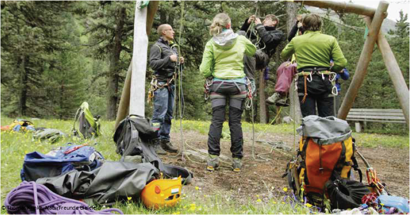 Die Grundlage für den Umgang mit der Persönlichen Schutzausrüstung bildet das Grundsatzpapier 312-906 der Deutschen Gesetzlichen Unfallversicherung (DGUV). Natürlich wird es auch bei den NaturFreunden umgesetzt: Der Umgang mit der PSA ist bereits seit 2018 Inhalt der Trainer*innenausbildung, auch werden Lehrteamer*innen Bergsport zu Sachkundigen qualifiziert. Zudem sind PSA-Fortbildungen geplant. Mittelfristig strebt die Bundesfachgruppe Bergsport eine verbandsinterne Ausbildung zum*zur Sachkundigen zur Prüfung der Persönlichen Schutzausrüstung im Bergsport an.